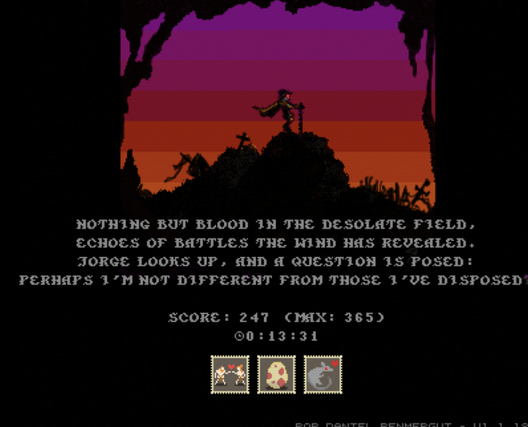 What an awesome game! Really addictive, I stayed up all night playing until I won. Excellent use of the Oryx assets too, I love the little interactions different monsters have, like the giants getting heart broken and the minotaur getting surprised when you steal their gold.